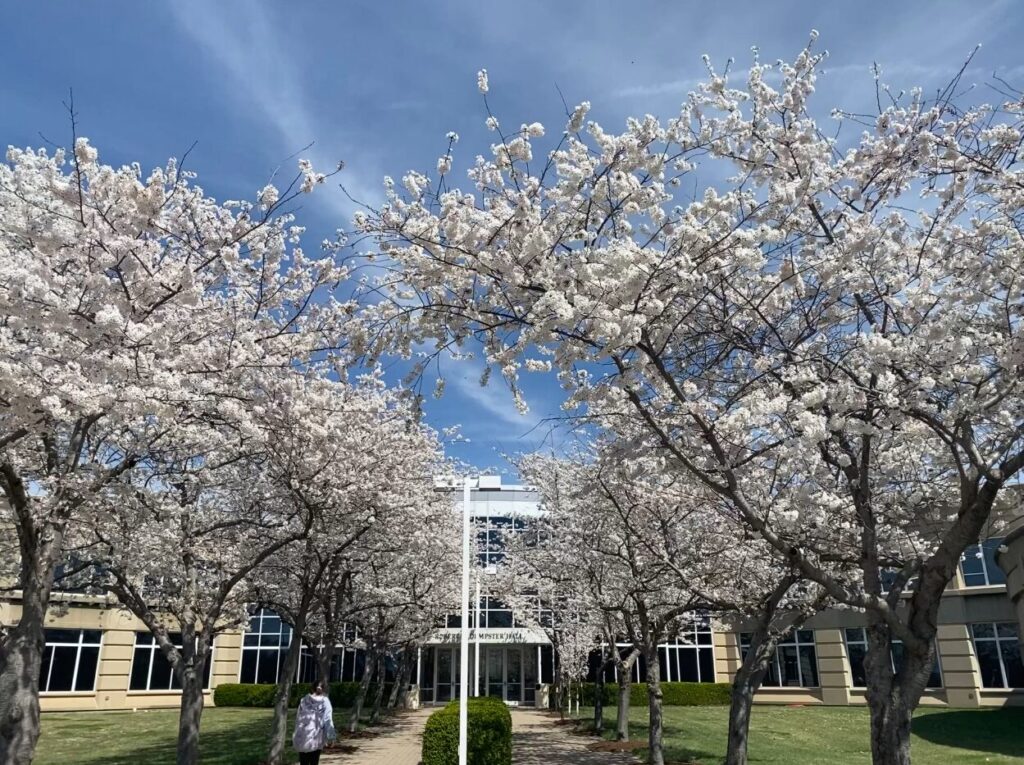 東京の開花よりも一足早く、アメリカミズーリ―州のケープジラード市では、ソメイヨシノの桜が満開になりました。同市の中心にキャンパスを構えるサウスイーストミズーリ州立大学ビジネス学部前の桜並木は、学生や教職員はもちろんのこと、多くの市民に親しまれています。