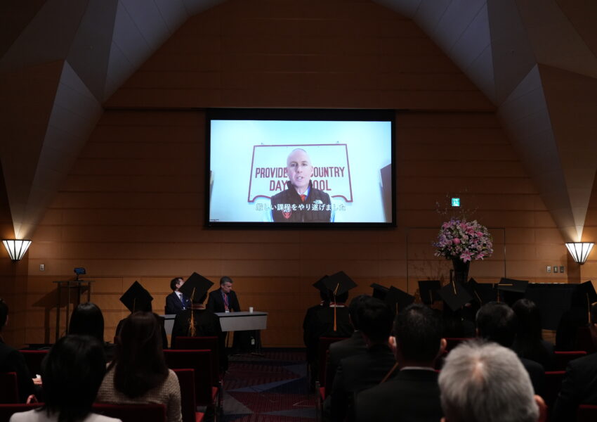 `Hudson Global Scholars(HGS)のグローバル・パートナーシップ部門責任者 ダニー・マケルヒニー氏は、修了生を「革新者であり、挑戦者であり、世界の一員として羽ばたこうとする存在」と称え、その努力を祝福しました。また、米国ロードアイランド州の本校 Providence Country Day School校長 ケビン・フォーラン氏からも、「インターネットという奇跡を通じて世界最高水準の教育を全うした生徒たち」へ、ビデオメッセージで温かい祝辞が贈られました。